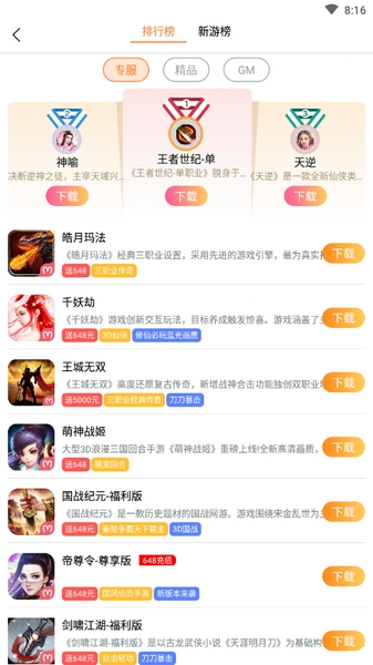 排行榜主要分为人气榜、飙升榜、下载榜,根据你的游戏喜好或者是下载量自动计算下载成功率;