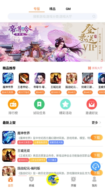 1、精细化的首页划分使游戏下载更加顺畅省时。