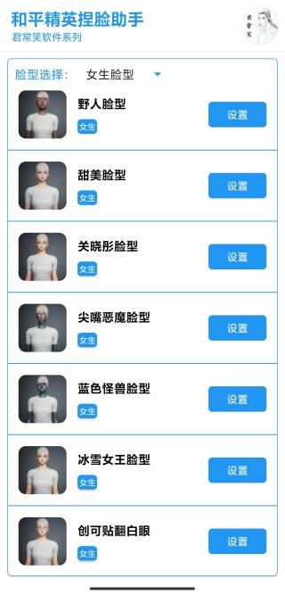 和平精英捏脸助手app是一个可以使用各种不同的皮肤的辅助工具,这款软件中有着丰富的功能和模板供用户选择。用户可以在软件中将自己喜欢的人物进行设置美颜,并根据自己的喜好调整五官效果、妆容风格以及服饰等等参数,让自己的游戏画面更加炫酷,感兴趣的小伙伴快来下载体验一下吧!
