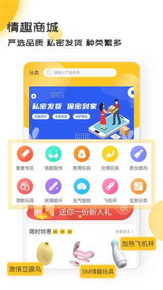 快吻是款受年轻喜爱的成人购物app,这里有各种各样的商品供你挑选!软件里有着海量的商品等着您来选择。并且还有很多折扣优惠活动让您可以购买心仪的商品哦!