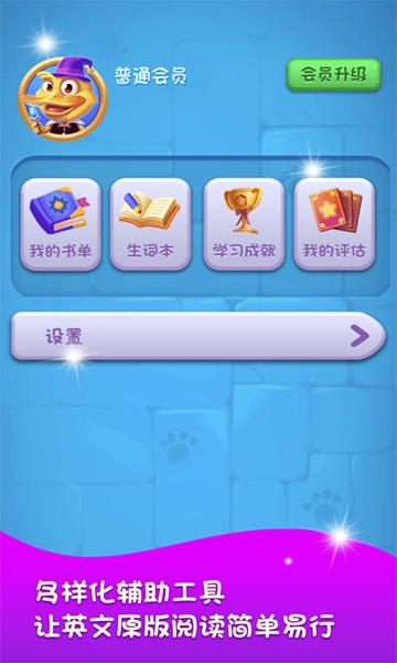 读伴儿分级阅读是专为学龄前的儿童设计的英语学习平台,采用先进的教学方法和丰富的内容。通过游戏化的方式引导孩子的阅读能力,培养孩子对英语的兴趣和兴趣。软件界面简洁明了,易于操作。孩子们可以轻松地浏览各种知识点的内容,提高自己的英语水平和语言表达能力。感兴趣的小伙伴快来本站下载体验吧!
