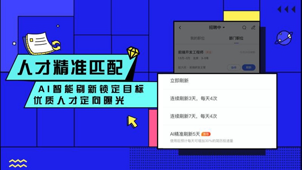 智联企业版通过对人才特征的智能识别技术,精准定位人才需求,提高招聘质量和曝光率。