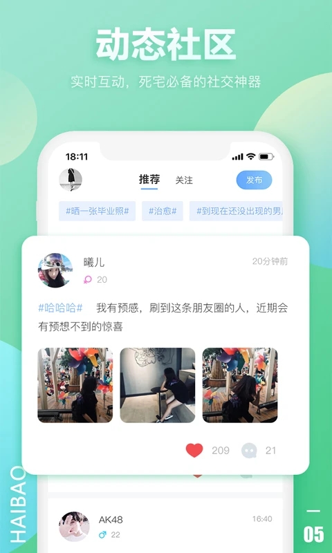 【动态分享】:发布自己的动态心情,发现更多有意思的人,遇见你的TA!