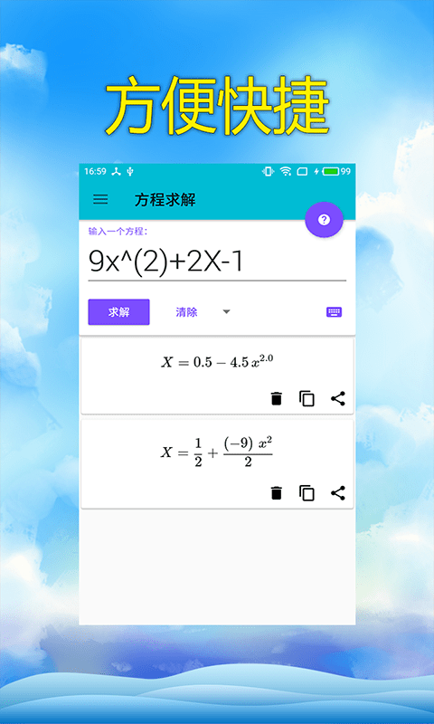 -除了基本的计算外,还支持函数图像识别以及图形转码输出等多项功能。