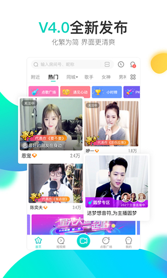 【全民主播】唱歌跳舞,有颜更有趣,更多选择。千万首热门歌曲供你挑选,让你享受唱吧音乐盛宴~