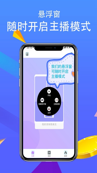 悬浮球+摇尾按钮三连击开启录影模式,录屏时悬浮窗实时记录精彩瞬间