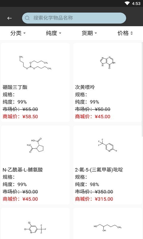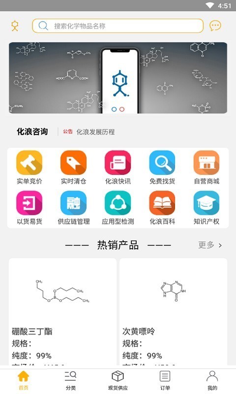在商城界面上有很多关于化学品的信息都能一目了然的一览无余呢。