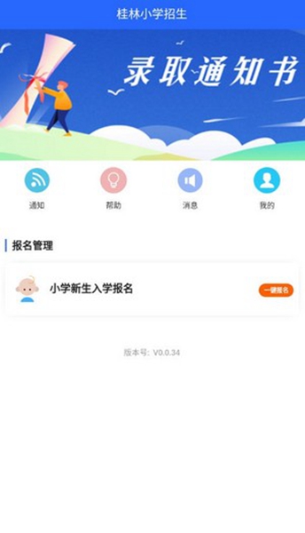 第一步:下载安装桂江幼儿园入学登记APP,安装完成后打开APP首页即可看到如下图所示: