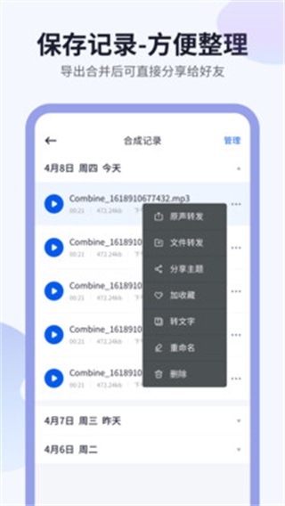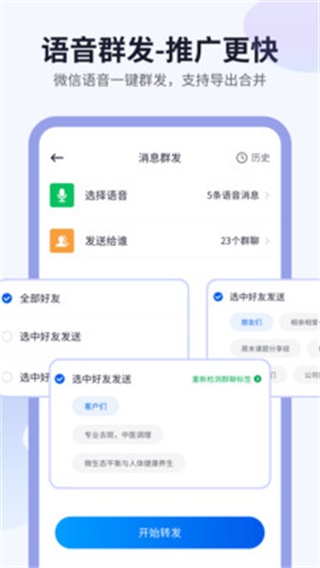 飞鸟语音转发app是一款微信朋友圈文字转换为语音的工具,可以将微信中多条不同的语音消息进行合并保存到手机相册当中。支持多种社交软件内容使用哦,快来绿色资源网下载体验吧!