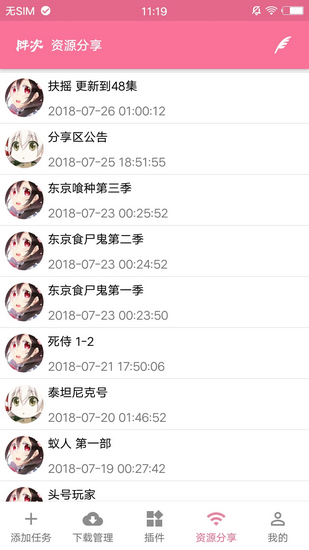 8、“我的”界面为你提供很多的功能板块供你选择查看:下载历史记录及分享/删除下载列表与设置(已下载任务)。