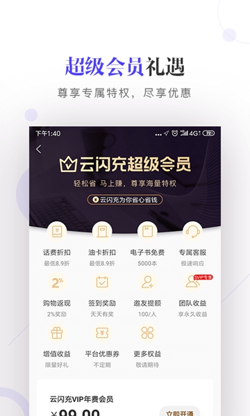 4、“云闪充”APP以“云闪充\"的理念,为大众提供了最快捷准确的选择方案,覆盖范围广,满足用户多样化的用车需求。