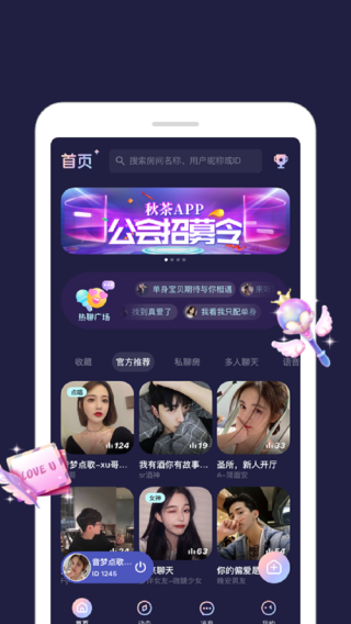 秋茶语音是款简单好用的手机语音交友app,通过开启用户们就能在线进行各种聊天和互动。软件用法非常方便我们在手机上获取到超多有趣的功能选择适合我们的社交圈子朋友哦。喜欢的朋友不妨速速下载吧