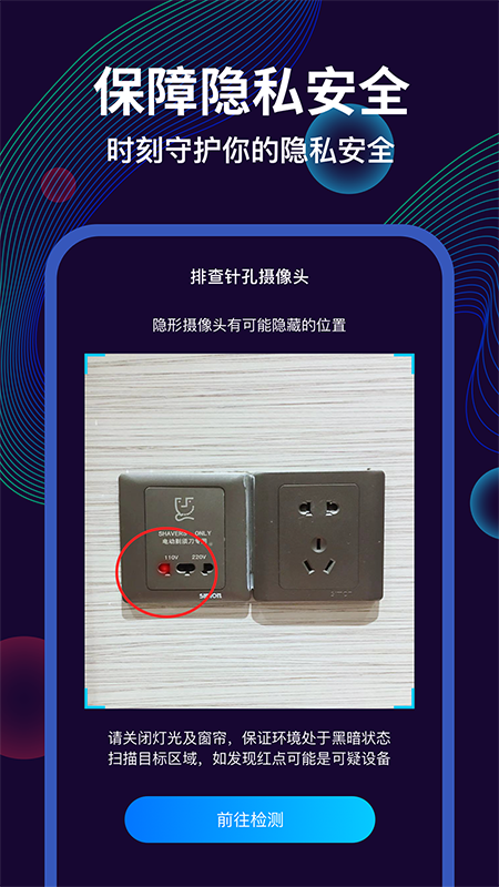 摄像头窥探器是款简单方便的手机隐藏摄像头检测软件,通过开启用户们可以轻松获取我们的防护和了解。超多功能也是免费提供给我们的用户的体验感也适合我们进行选择使用。想要不妨速速下载吧
