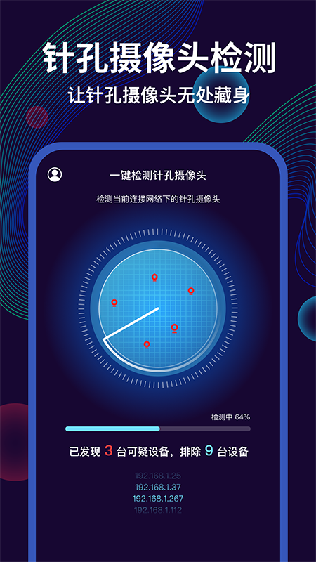 这款软件非常适合一些经常外出的用户使用的,因为它是一个专业的检测工具,能对周围周围的摄像头进行检测与检测操作,