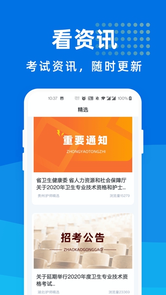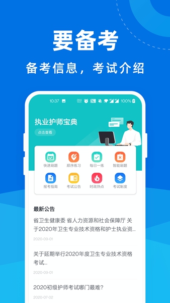 本APP主要提供护士资格证报考相关功能服务及相关的专业资讯,