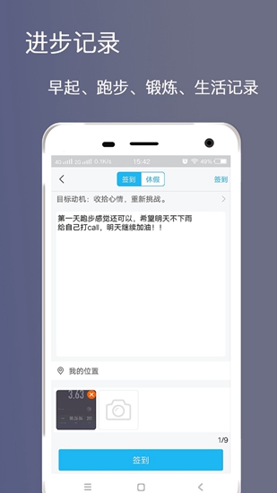 健身打卡是一个可以帮你克服种种困难的小工具。健身打卡是一个能帮用户克服一些小事,让你养成好习惯。每天的习惯都会记录下来,并且能够随时查看自己的打卡数据哦!