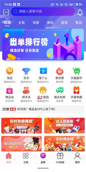 3、每日更新大量淘宝天猫商品优惠资讯动态:包括今日疯抢榜、淘客榜、天天特惠、团购专区等众多类目实时同步更新,确保您第一时间获取最新的信息。