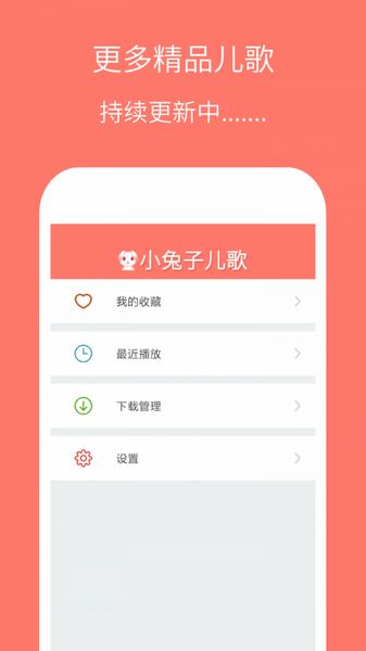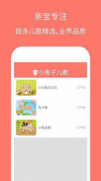 小兔子儿歌类儿歌种类丰富多样,海量儿歌视频随你选择播放观看。这里有各种类型的儿歌可以收听哦,还有很多经典儿歌资源等你来体验。而且还可以根据自己的喜好去设置字体大小以及颜色等等!