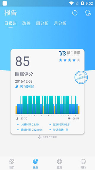 -睡眠报告:专业的睡眠报告一键查询即可获取全面的数据反馈服务了;