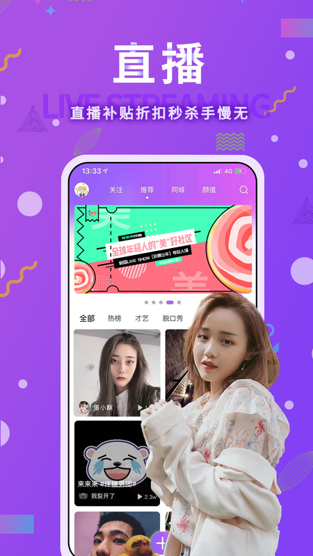 汇聚众多美女帅哥,拥有超高颜值直播间陪你一起玩转美妆个护、美食烹饪、旅行日记、萌宠养成、运动健身...总有一个适合你。