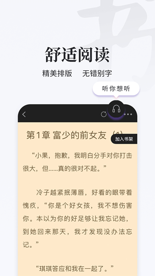 5、听书模式:解放你疲惫的眼睛,满足你挑剔的耳朵。
