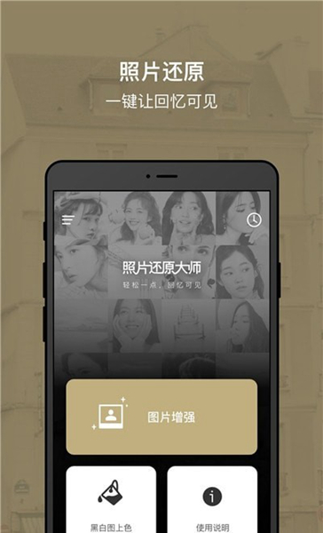 照片还原大师app是一款非常实用的照片恢复的软件,可以帮助用户快速将老旧照片进行修复。该软件操作简单易懂,即使是小白也能轻松上手使用。同时还可以对图片中的人物进行美颜修图和抠像等功能来增强图片的色彩,让图片呈现出不一样的美观风格。