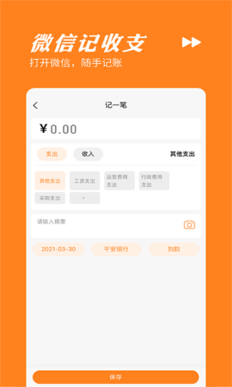 橙友记账通是一款极简、易用的专业记帐APP,简单几步即可完成记账操作。
