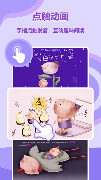 动画绘本馆,是一款专注于3~12岁孩子的早教绘本应用,精选全球高品质中文绘本,通过趣味互动和专业朗读提升小朋友对英语的兴趣。