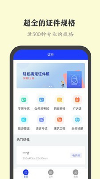 包含500多项证件照规格任你选,从常规的签证照、宝宝证件照到各国资格证书考试报名等各类需要的证件照类型都能完美解决。