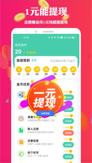 丰富的趣味任务玩法为用户带来更多欢乐体验,还有各种奖励拿,让你一边运动一边赚钱。