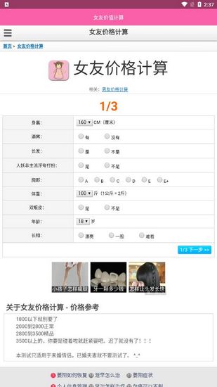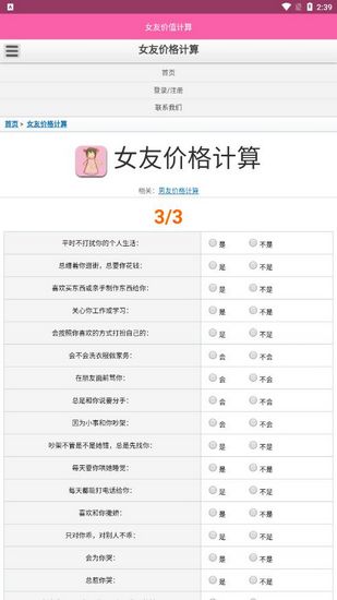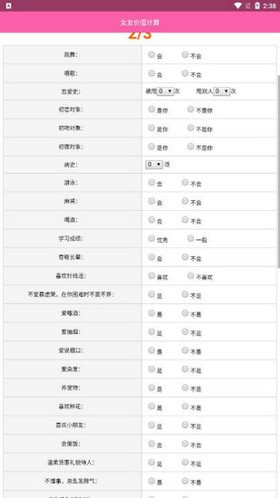 女友价值计算器是专为广大的男生量身定制的一款超实用的手机软件,该软件不仅能够帮助用户们进行恋爱指数和性格分析等功能使用呢。同时该平台内置了强大的智能计算工具,可支持用户通过自定义选择公式来快速准确地算出最合适的爱情指数,从而让你可以更好的了解爱情指数。软件整体界面简洁清爽,操作简单易上手,即便你是刚入坑新手,也能够轻松学会使用,有感兴趣的小伙伴快来本站下载吧!