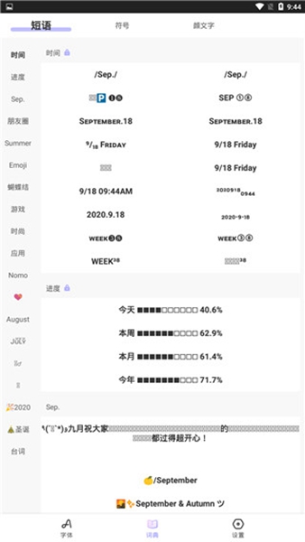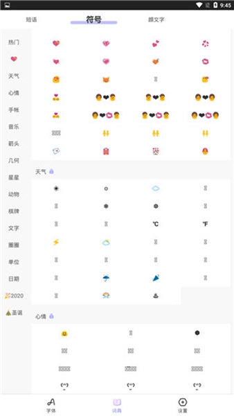 花样文字破解版app是一款非常有趣好玩的趣味字体软件,这款软件为用户提供了海量的字体资源供用户自由选择使用,并且软件还支持多种不同的输入方式以及各种符号等。不仅如此,该软件还有各种颜文字、emoji表情包等等内容任君挑选下载体验哦!