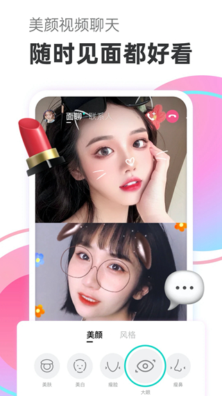 一甜面聊app是主打视频聊天的交友软件,这款软件支持用户直接与自己的好友进行语音、视频通话以及文字等方式交流互动,并且还有非常多有趣的玩法可以使用,喜欢的小伙伴快来下载体验吧!
