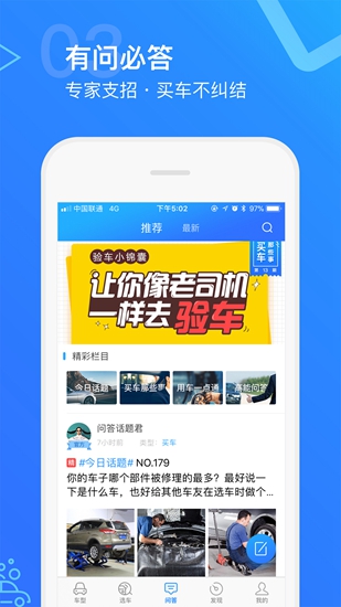 设有专业的汽车问题提问渠道,解答用户疑问及时解决困惑。