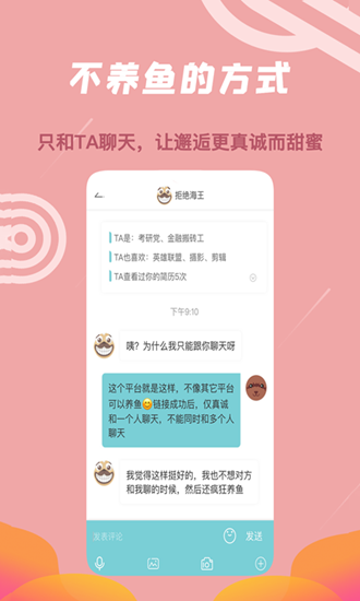 提供即时聊天系统并可随时随地查看其他用户的详细介绍内容以及回复情况;
