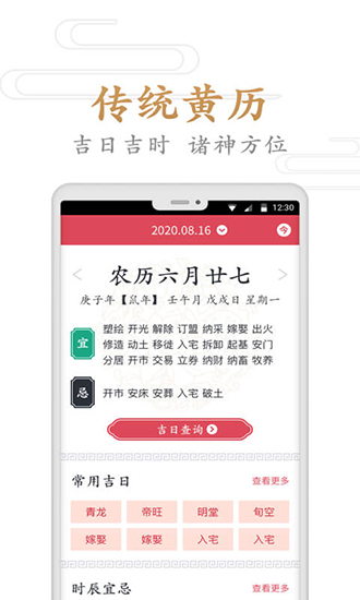 10、更多强大功能:天气动态、星座运势、周公解梦、星罗盘、五行八字、九宫格翻页、生肖喜忌、生理期、神煞方位、飞天散落等,覆盖所有类型和地区。