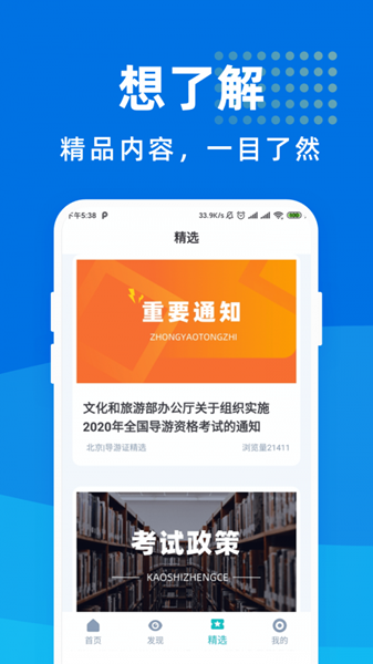 导游证宝典app可以帮助用户在线学习专业的知识,软件内拥有海量的题库资源可供选择练习和模拟考试功能哦,让用户轻松通过导游资格证考试!并且还提供各种详细的讲解视频以及相关政策信息等内容呢,有需要的用户就来下载使用吧。