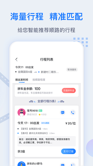 只需输入目的地名称或者点击“一键召集”,即可立即获得附近的车辆订单详情了。同时还支持多条线路供用户自由切换乘车站点与途经点之间的距离筛选(如公交换乘、城际出行、长门锁)方便快捷查找合适行程地点。