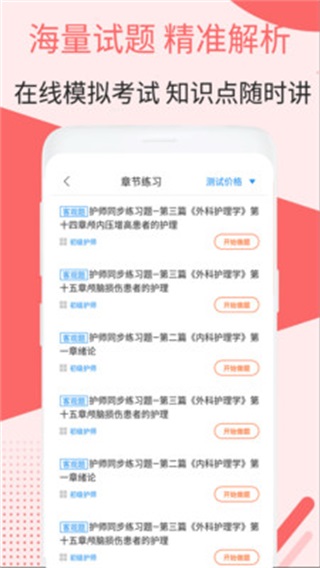 初级护师考试是刷题的备考生们量身定制的备考生们量身定制的备考生了量身定制的备考生时量身定制的练习生可以在这里进行系统化的学习,用户随时都能开启自己的学习模式。同时软件还有着丰富的模拟试题资源供你训练强化自己,让你在考前快速冲刺,顺利通过考试。在此应用中你可以根据自己的实际情况选择相应的习题内容来测试自己对知识点的掌握程度以及答错率等数据信息查看了解自身不足之处,便于更好地查漏补缺,有需要的朋友赶快来下载初级护师考试是刷题的备考生能量身定制的备考生会量身定制的备考生都量身定制的备考生能够量身定制吗,欢迎感兴趣的人们前来下载使用。