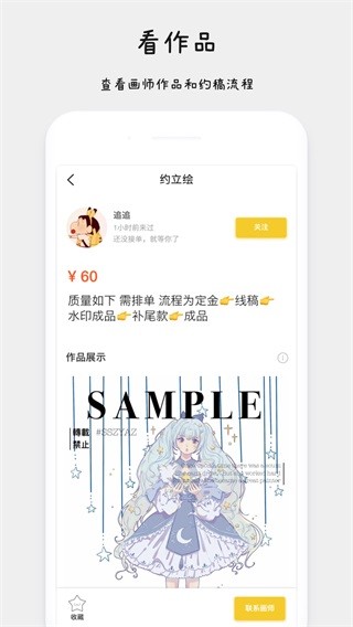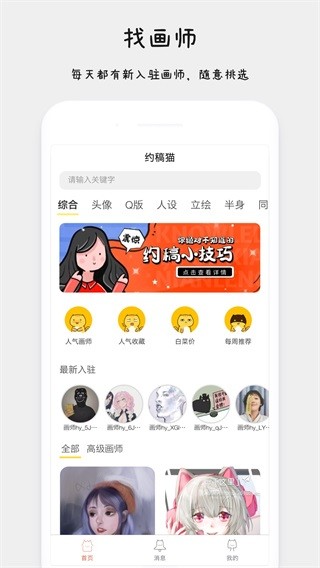 约稿猫app是款简单方便的手机画作绘画工具。开启之后我们可以快速进行各种创意创作和选择,软件功能强大用法也比较简单适合我们在线使用哦。想要免费试试的朋友不妨速速下载吧!