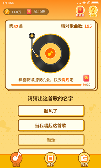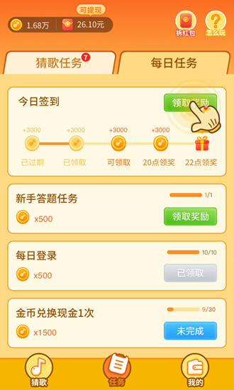 1、轻松休闲的猜歌曲赚钱任务平台,在这里大家能快速赚零花钱;