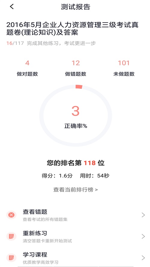 真题卷模拟实际应试环境,考试分数和实际答对率一目了然。