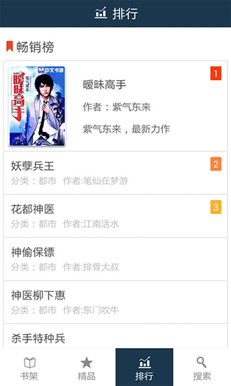 2、【热书排行榜】书城精细化分类,男频女频,智能搜索满足你的口味。