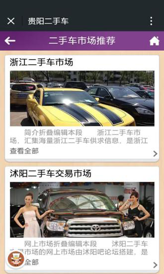贵阳二手车是贵阳市的一款为贵阳当地人民服务的软件,在这里你可以查询汽车信息、了解最新的新闻资讯以及购买到二手车辆等功能服务。有需要的用户快来绿色资源网下载吧!