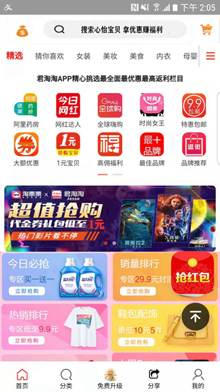 君淘淘想让自己消费者都体验到实惠网购的乐趣,这里有超多低价的好物商品供你选择购物。在这里你可以享受到非常优惠的价格购买哦,并且平台还会为你发放优惠券!欢迎喜欢购物的朋友下载使用!