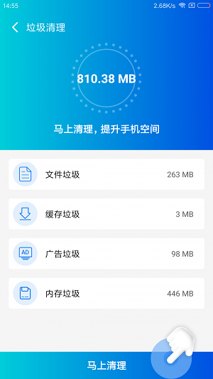 1、支持深度扫描,可根据用户的手机设备性能及存储空间需求自动定位并清理残留的无用的缓存垃圾;
