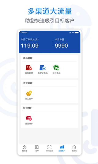 悦卖是一款以商品销售为核心功能的专业电商APP,帮助商户快速高效完成线上开店及线下营销活动等一系列操作。