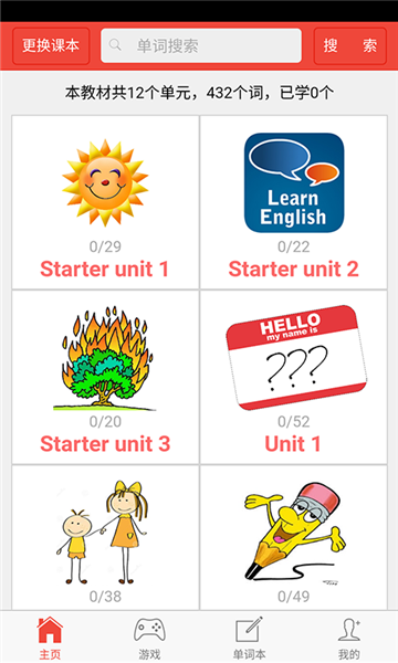 初中英语单词通app为学生提供了初中所有英语单词的学习资料,通过软件就能进行课本上的各种内容查询!并且还有很多练习功能等你来体验哦!