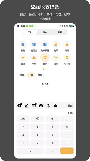 1、快速高效:极简设计,操作流程,3秒完成一笔记账工作;