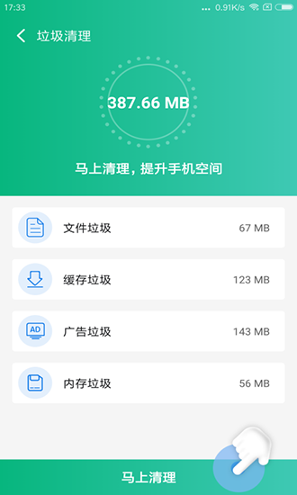 1、支持全盘扫描,能够实时监测到手机上所有的垃圾数量。